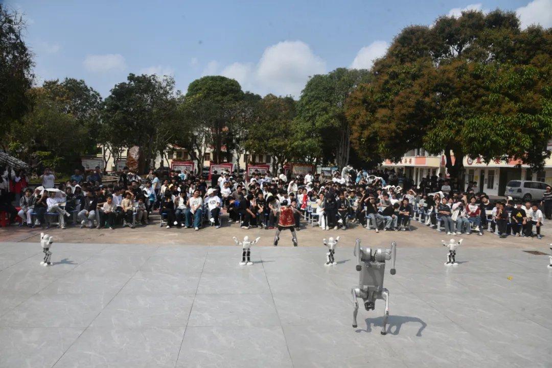 早上10点,雄赳赳气昂昂的机器人天团将现场活动氛围瞬间燃爆,首先出场的阿尔法机器人是熟练的老演员了,没多久,憨态可掬的机器狗笨笨也加入小机器人们的舞蹈行列,最后压轴出场的是科技馆的新伙伴——宇树科技高性能机器人小科,它曾亮相央视春晚,代表中国智能装备的硬核实力!机器人天团同台斗舞,让同学们看到了中国制造的魅力,体验到科学带来的无限乐趣。